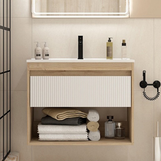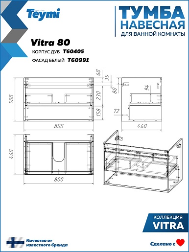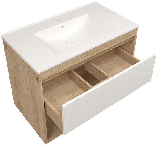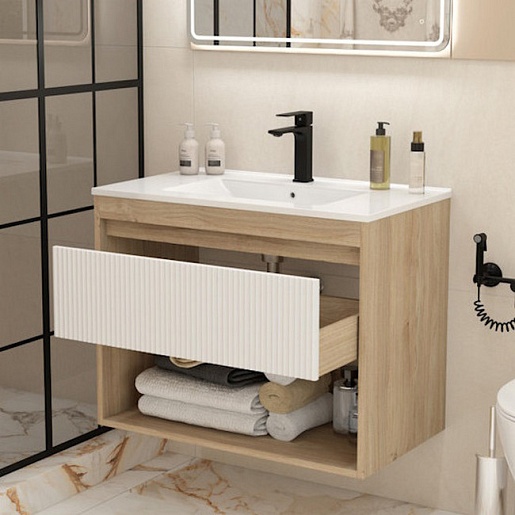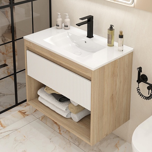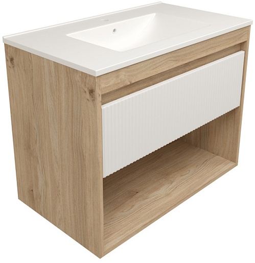 Подвесная тумба с раковиной Teymi Vitra 80 Волна дуб/белый - арт. T60405 / T60424 / T51001.