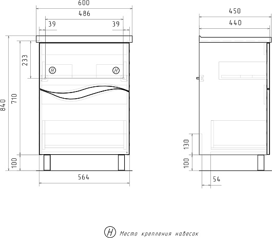 Комплектация: тумба, раковина, ножка (2 шт.), крепеж.