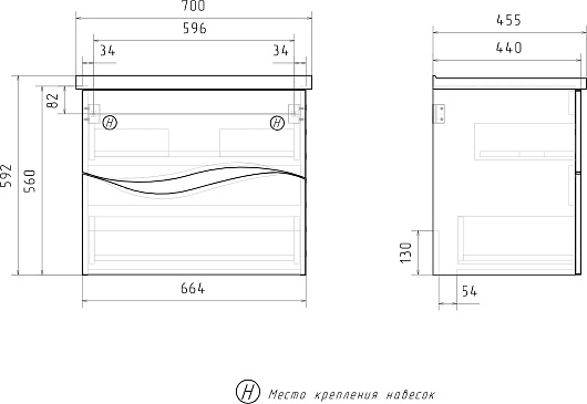 Подвесная тумба с раковиной Volna Volna 70.2Y - арт. tpVLN70.2Y-01 / 1WH302250.