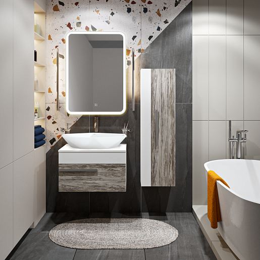 Тумба под раковину Вудлайн 65 скандинавский дуб/белая