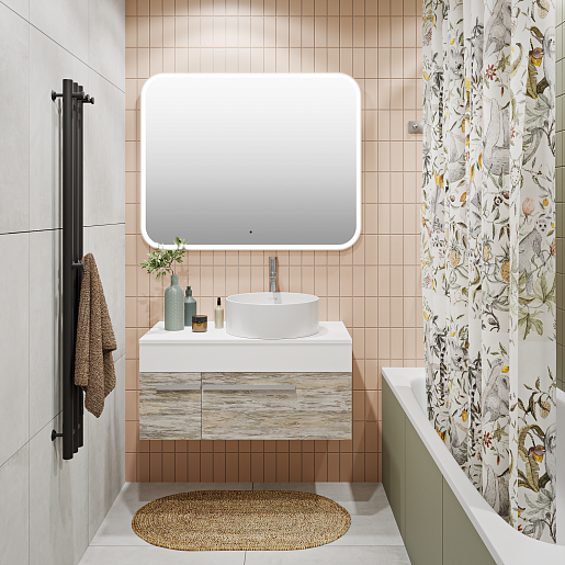 Тумба под раковину Вудлайн 85 скандинавский дуб/белая