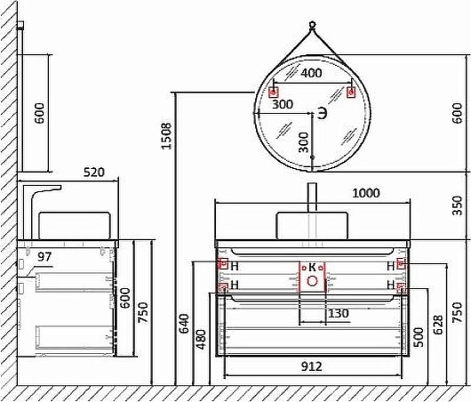 - С отверстием под раковину.
