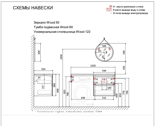 - Столешница в ванную под раковину Wood 122 темное дерево на стиральную машину.