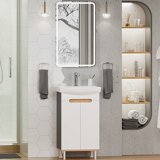 Тумба под раковину Сканди 50 белая/дуб крафт золотой/антрацит