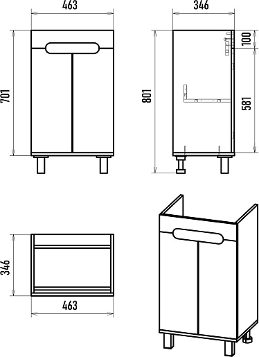 - 2 распашные дверки.