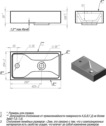 - Материал: литьевой мрамор.