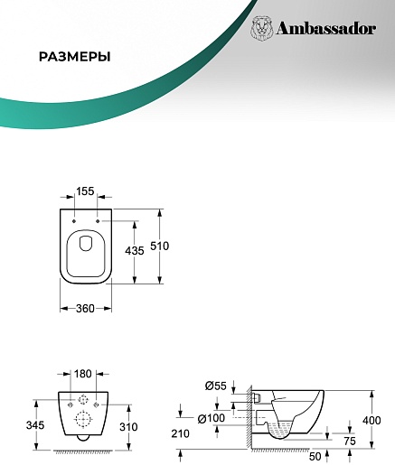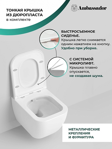 Ambassador Унитаз Forsa подвесной безободковый белый с сиденьем микролифт