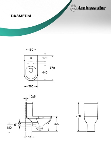 Ambassador Унитаз компакт Abner безободковый белый с сиденьем микролифт