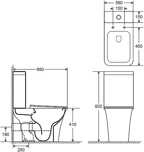 - Размер (ШxВxГ): 360 x 820 x 660 мм.