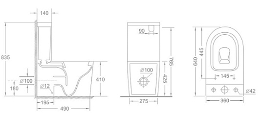 В комплекте: чаша унитаза, бачок, смывной механизм, крышка-сиденье, крепеж.