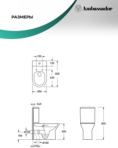 Ambassador Унитаз компакт Elysium безободковый белый с сиденьем микролифт