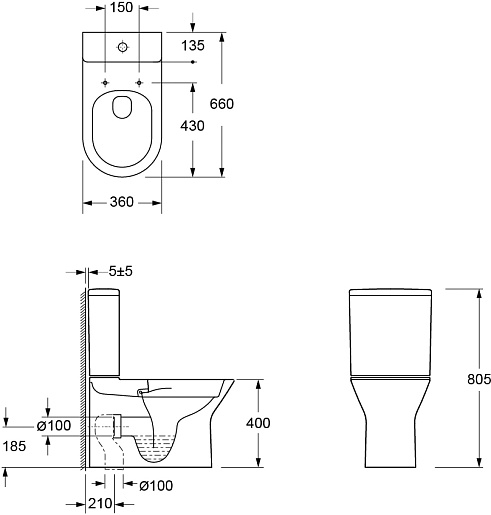 В комплекте: чаша унитаза, бачок, смывной механизм, крышка-сиденье, крепеж.
