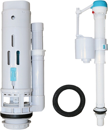 В комплекте: чаша унитаза, бачок, крышка-сиденье, механизм смыва, крепления.