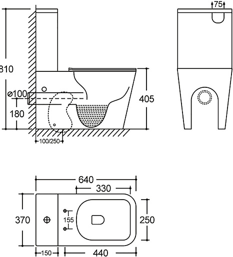 - Размер (ШxВxГ): 370 x 810 x 640 мм.