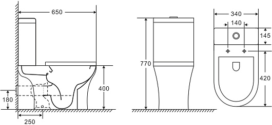 В комплекте: чаша унитаза, бачок, крышка-сиденье, механизм смыва, крепления.