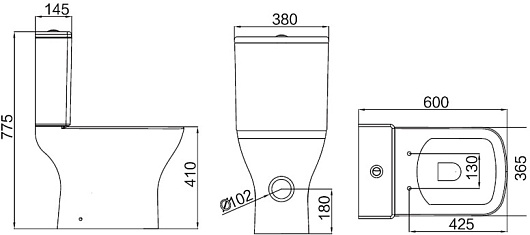 - Размер (ШxВxГ): 380 x 775 x 600 мм.