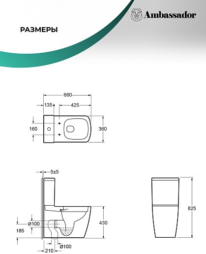 Унитаз компакт Ambassador Kingston с сиденьем Микролифт - арт. 147K19001RS.