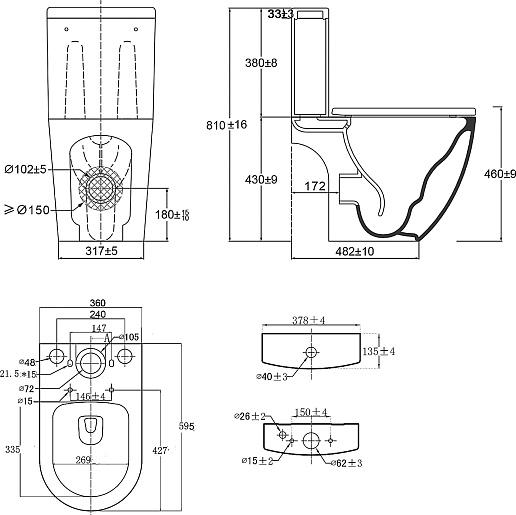 - Размер (ШxВxГ): 378 x 810 x 595 мм.