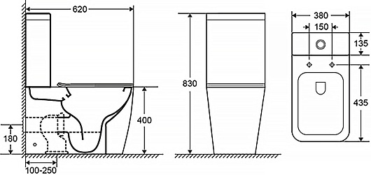 - Размер (ШxВxГ): 380 x 830 x 620 мм.