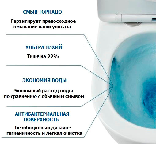 В комплекте: чаша унитаза, бачок, механизм смыва.