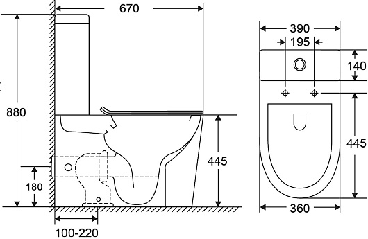 - Размер (ШxВxГ): 390 x 880 x 670 мм.