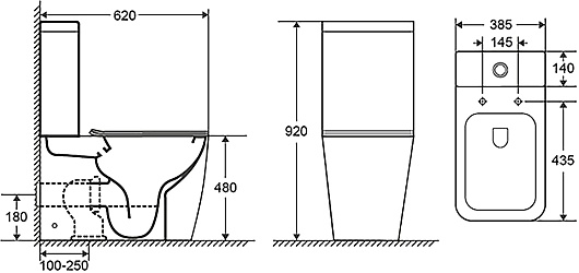 - Размер (ШxВxГ): 385 x 920 x 620 мм.