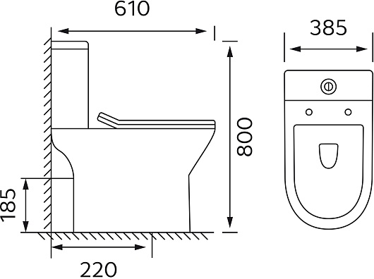 - Размер (ШxВxГ): 385 x 800 x 610 мм.