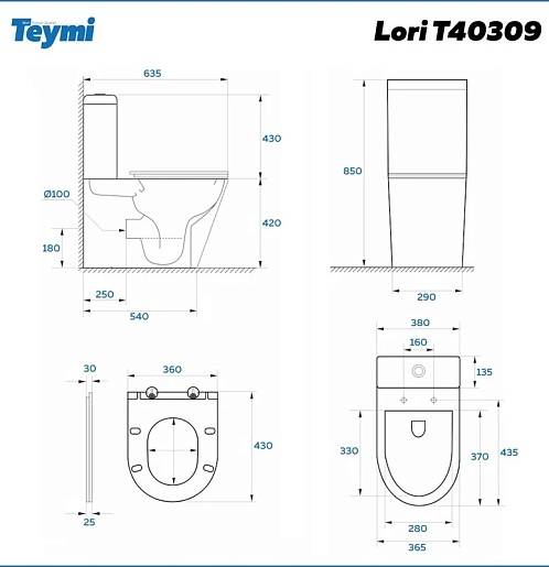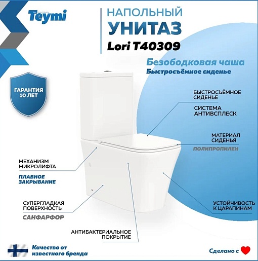 Teymi Унитаз-компакт напольный Lori T40309 глянцевый белый