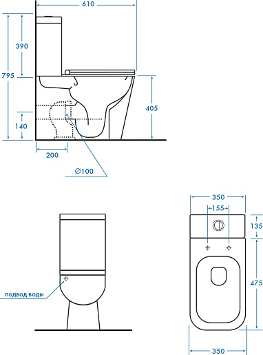 Комплектация: чаша бачка, бачок, смывной механизм, крышка-сиденье.