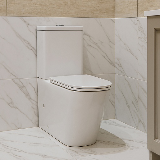 Azario Унитаз-компакт Quadro AZ-2175 безободковый с бачком с сиденьем микролифт белый