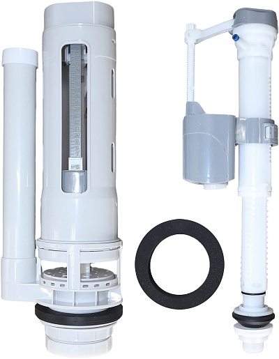В комплекте: чаша унитаза, бачок, крышка-сиденье, механизм смыва, крепления.