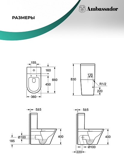 Ambassador Унитаз компакт Ritz безободковый белый с сиденьем микролифт