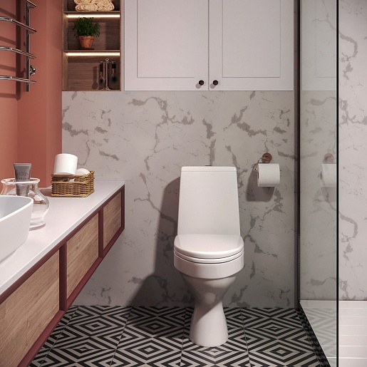 - Сиденье из полипропилена с системой плавного опускания (Soft close).