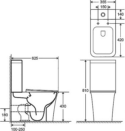 - Размер (ШxВxГ): 355 x 810 x 625 мм.