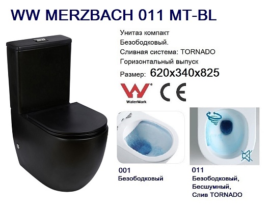 WeltWasser Унитаз компакт WW Merzbach 011 MT-BL безободковый черный матовый