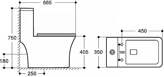 - Размер (ШxВxГ): 350 x 750 x 665 мм.