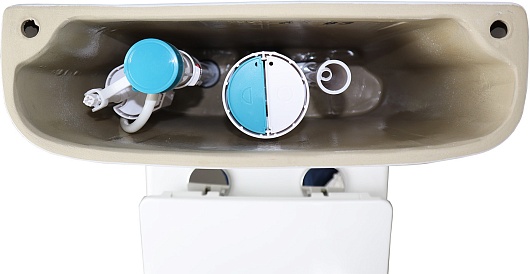 В комплекте: чаша унитаза с бачком, крышка-сиденье, механизм смыва, крепления.