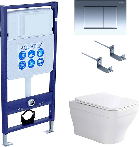 Aquatek Унитаз подвесной Амадео AQ1163-00 в комплекте с инсталляцией Standard INS-0000012 с клавишей смыва KDI-0000010 глянцевый хром и крепления KKI-0000002