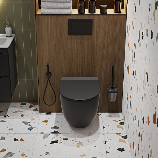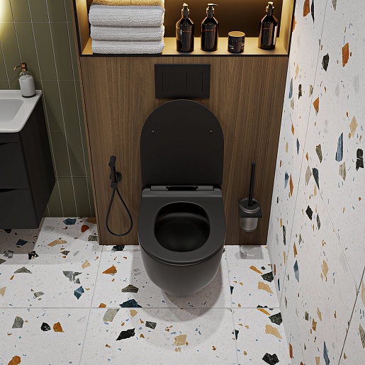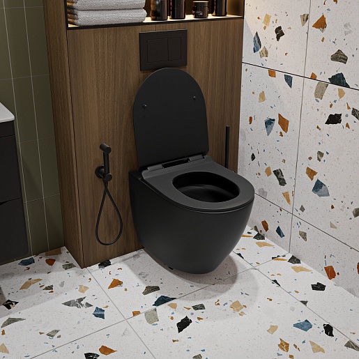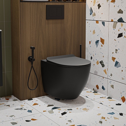 Унитаз подвесной Vivon Colett PDBL02 безободковый с быстросъёмным сиденьем микролифт черный матовый.