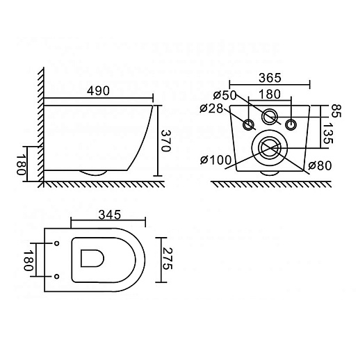 Чаша унитаза подвесного Colorato BB062CHR-MB безободкового без сиденья