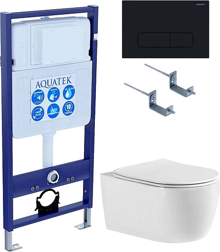 Aquatek Унитаз подвесной Европа New AQ1106-00 в комплекте с инсталляцией Standard INS-0000012 с клавишей смыва KDI-0000017 матовая черная и крепления KKI-0000002