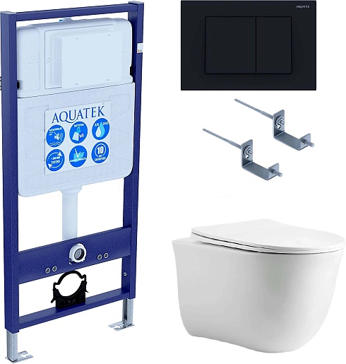 Aquatek Унитаз подвесной Классик AQ1112-00 в комплекте с инсталляцией Standard INS-0000012 с клавишей смыва KDI-0000012 матовая черная и крепления KKI-0000002