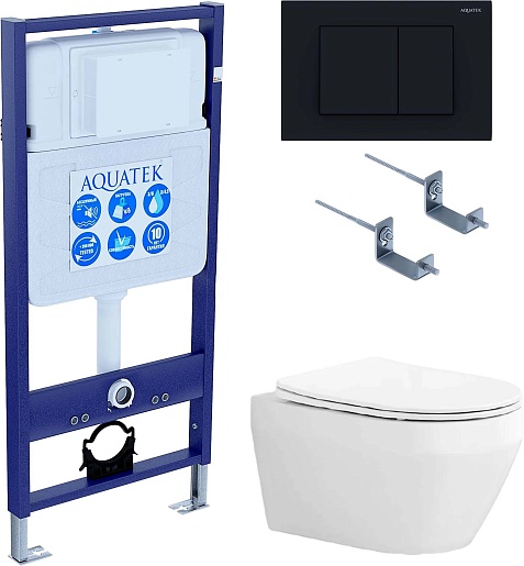 Aquatek Унитаз подвесной Лея AQ1199-00 в комплекте с инсталляцией Standard INS-0000012 с клавишей смыва KDI-0000012 матовая черная и крепления KKI-0000002