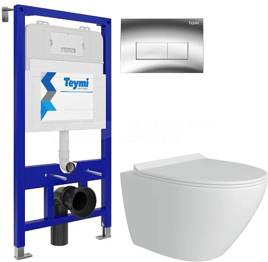 Teymi Унитаз подвесной Lina Pro T40106 с инсталляцией Aina T70011 кнопка Helmi T70202CH