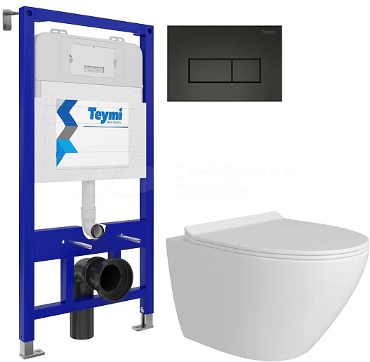 Teymi Унитаз подвесной Lina Pro T40106 с инсталляцией Aina T70011 кнопка Helmi T70203BM