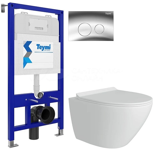 Teymi Унитаз подвесной Lina Pro T40112 с инсталляцией Aina T70011 с кнопкой Lina T70102CH