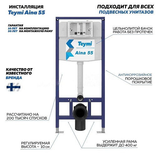 Teymi Унитаз подвесной Lina S T40102 с инсталляцией Aina 1220067 с кнопкой Aina T70013BM