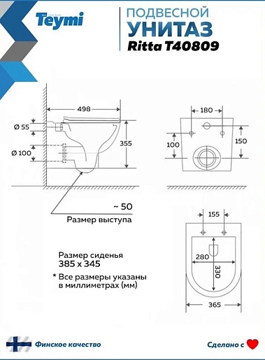 - Антивсплеск: форма воронки унитаза предотвращает образование брызг.