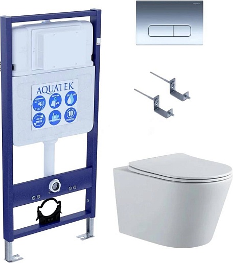 Aquatek Унитаз подвесной Вега AQ1905-00 в комплекте с инсталляцией Standard INS-0000012 с клавишей смыва KDI-0000016 глянцевый хром и крепления KKI-0000002