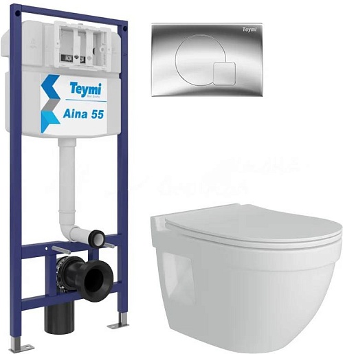 Teymi Унитаз подвесной Vitra Pro T40806 с инсталляцией Aina 1220067 с кнопкой Ellie T70022CH